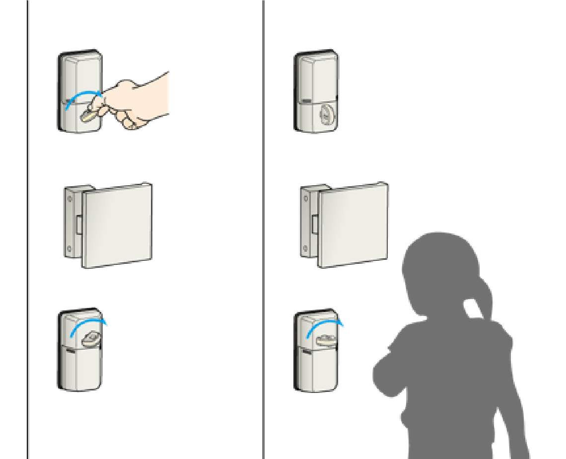 - 最初に下部のスマートロックをメカニカルキーまたはサムターンで施錠した場合は、上部は自動的に施錠しません。