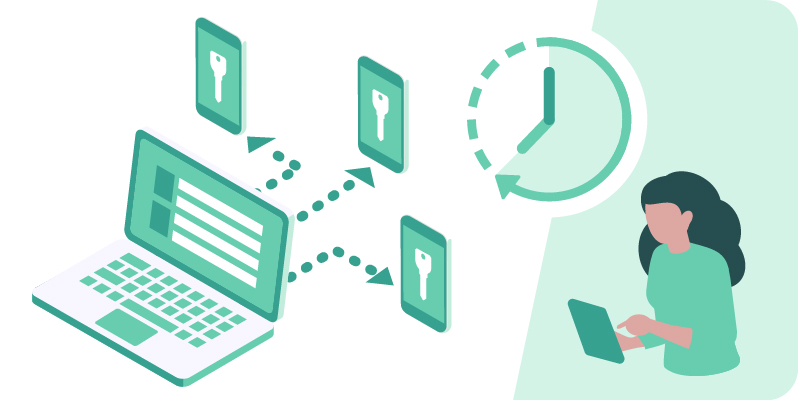 Web管理システムから、指定した時間だけ施錠・解錠操作ができる時限式の鍵(暗証番号やURLキー)を発行し、メールでスペース利用者へ配布します。